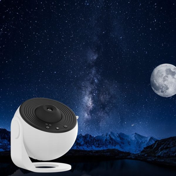 Projektor wyposażony został w obrotową głowicę, która powoli kręci się wokół własnej osi imitując gwieździste niebo, kosmos lub planety w realistyczny sposób na Twoim suficie!