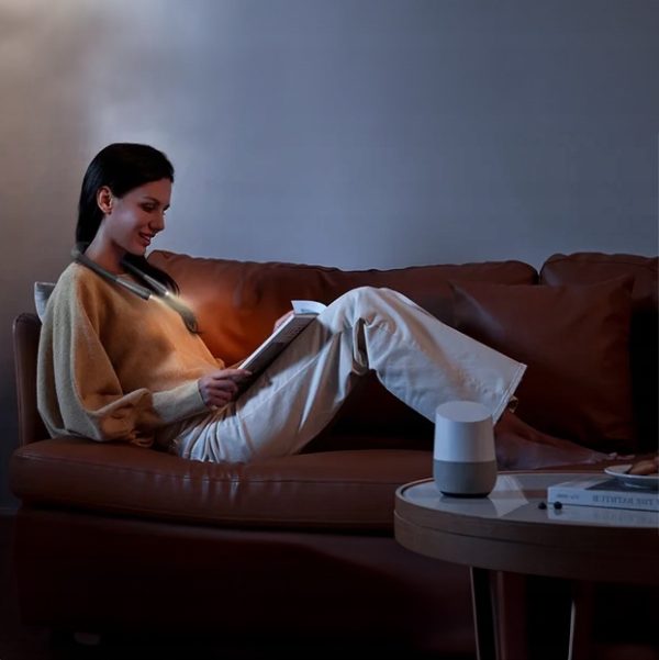 Dodatkowo w miejscu, gdzie lampka opierać się będzie o szyję znajdziesz miły w dotyku materiał, dzięki któremu lampka nie będzie Cię uciskać.